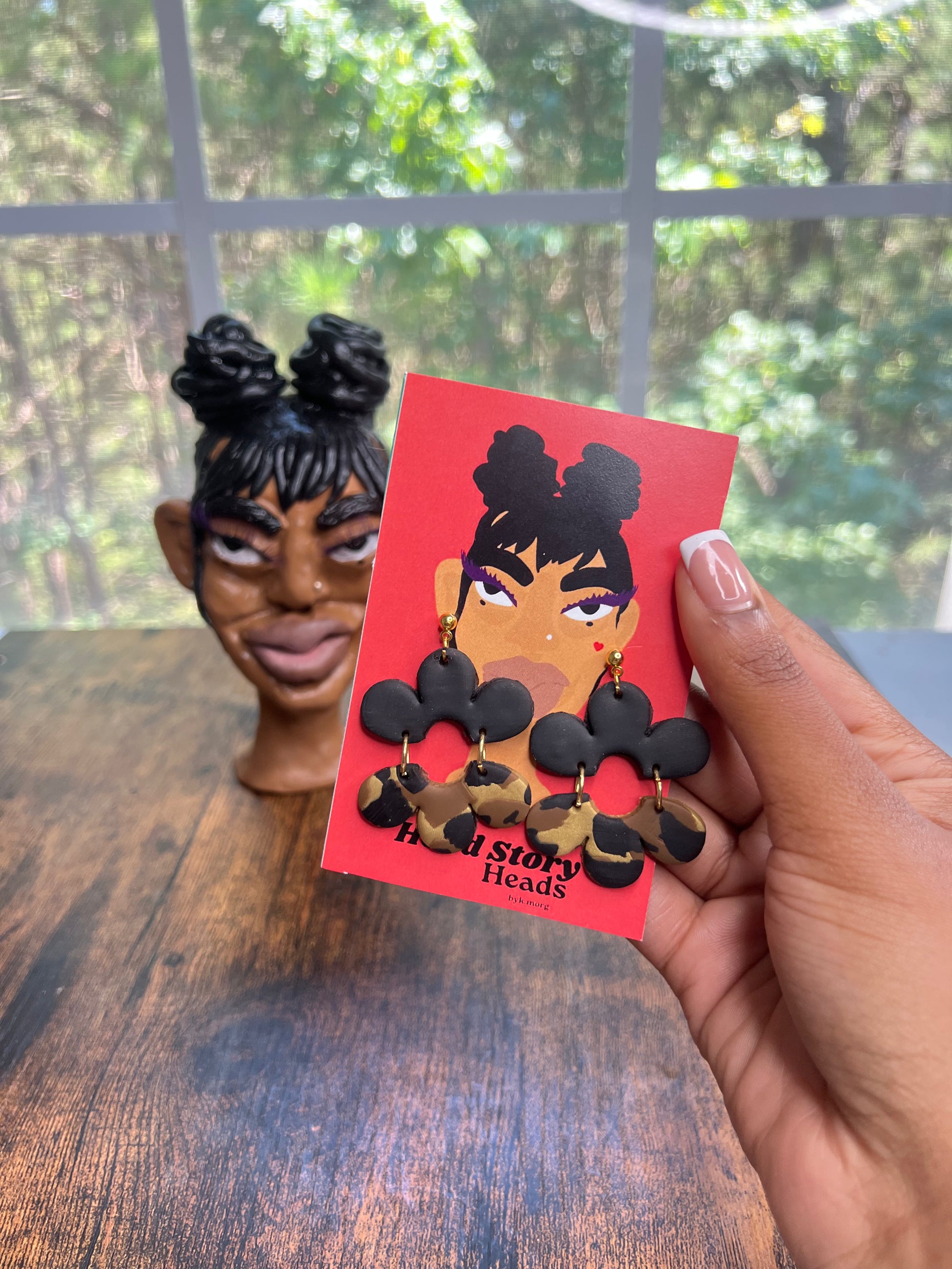HSH Dangles are handmade clay earrings. Due to the delicate nature of the clay, handle with care to avoid breakage. Avoid contact with water and harsh chemicals. Colors may vary slightly due to the handmade nature of each piece.