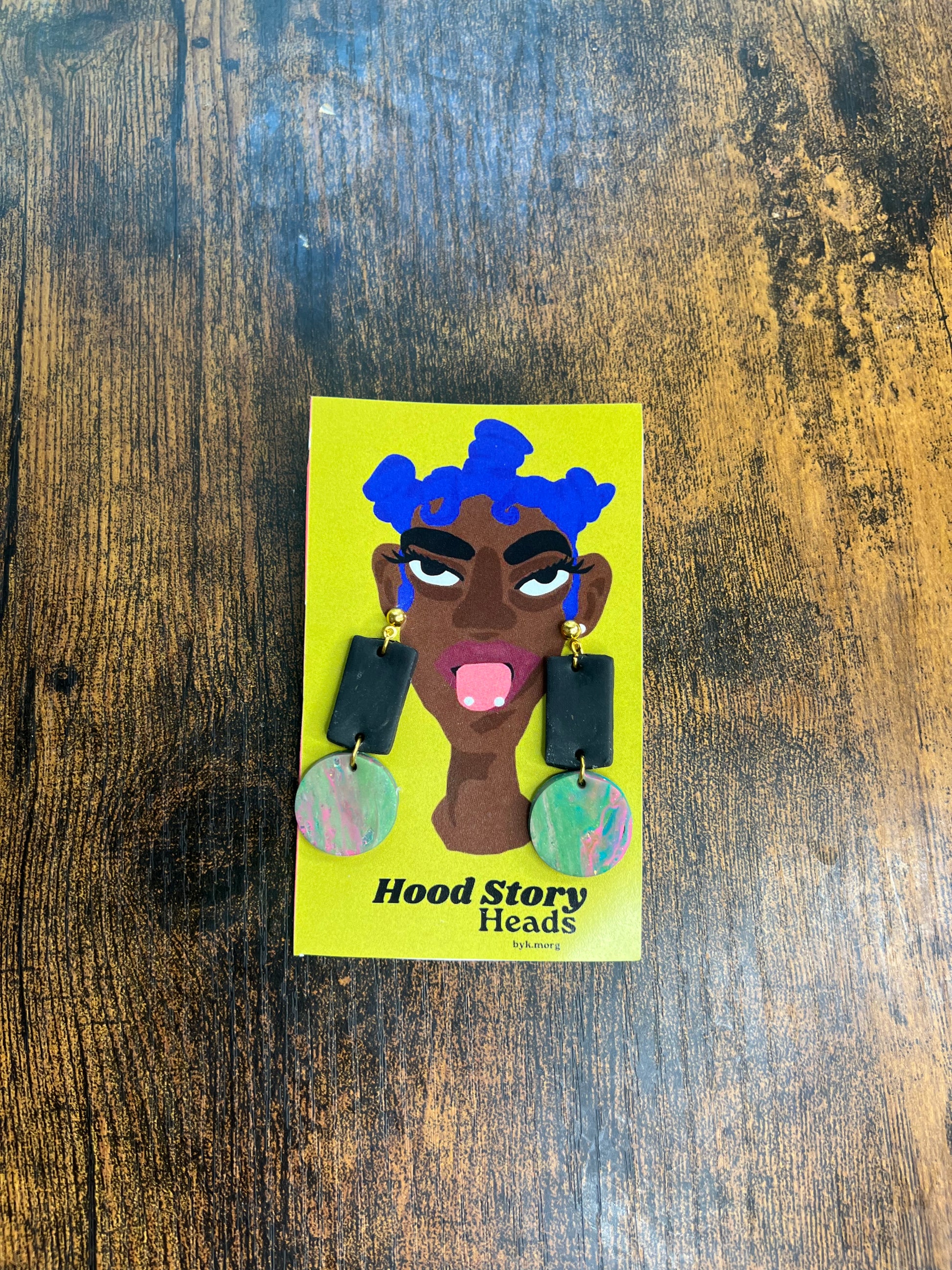 HSH Dangles are handmade clay earrings. Due to the delicate nature of the clay, handle with care to avoid breakage. Avoid contact with water and harsh chemicals. Colors may vary slightly due to the handmade nature of each piece.