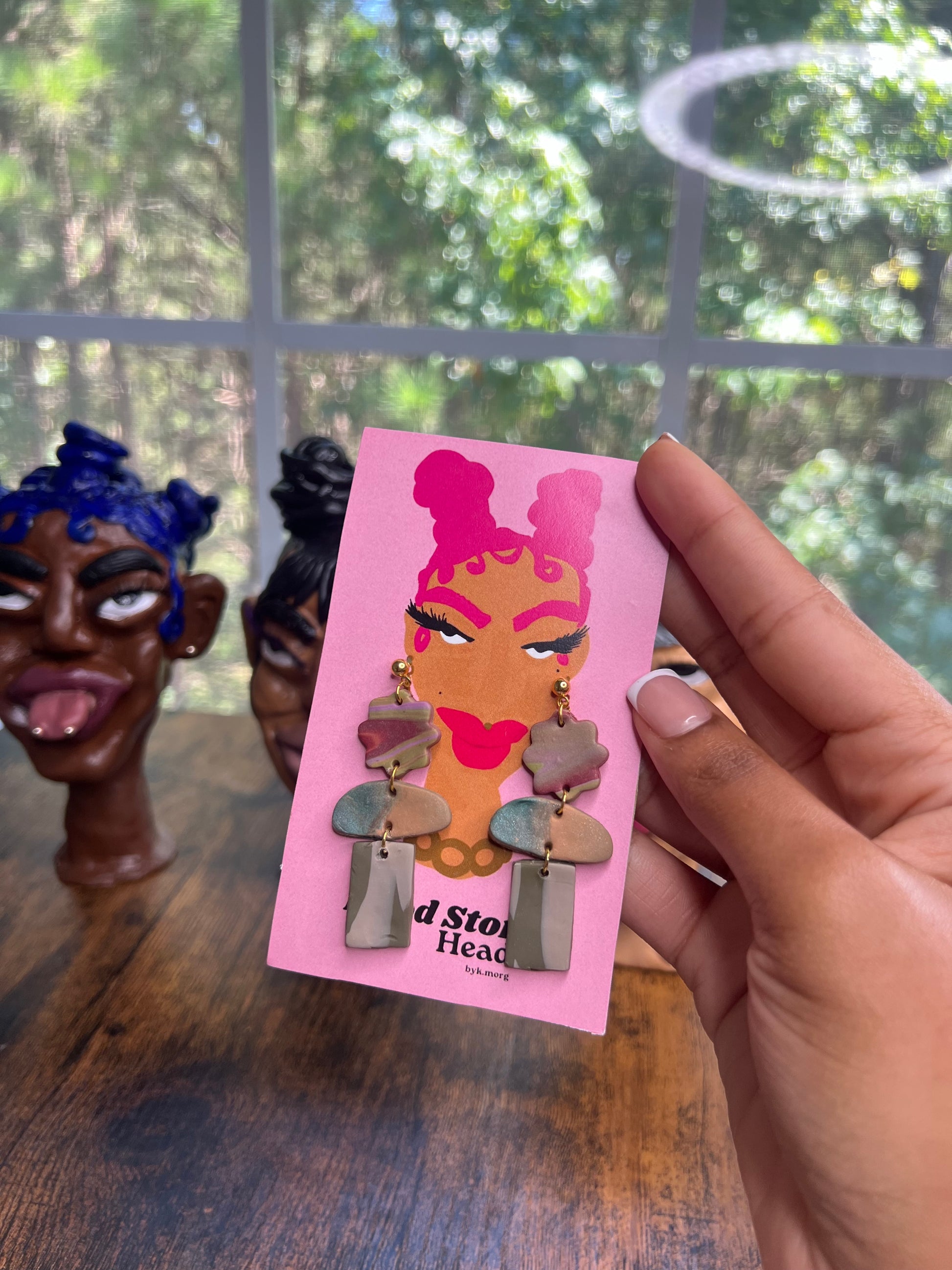 HSH Dangles are handmade clay earrings. Due to the delicate nature of the clay, handle with care to avoid breakage. Avoid contact with water and harsh chemicals. Colors may vary slightly due to the handmade nature of each piece.