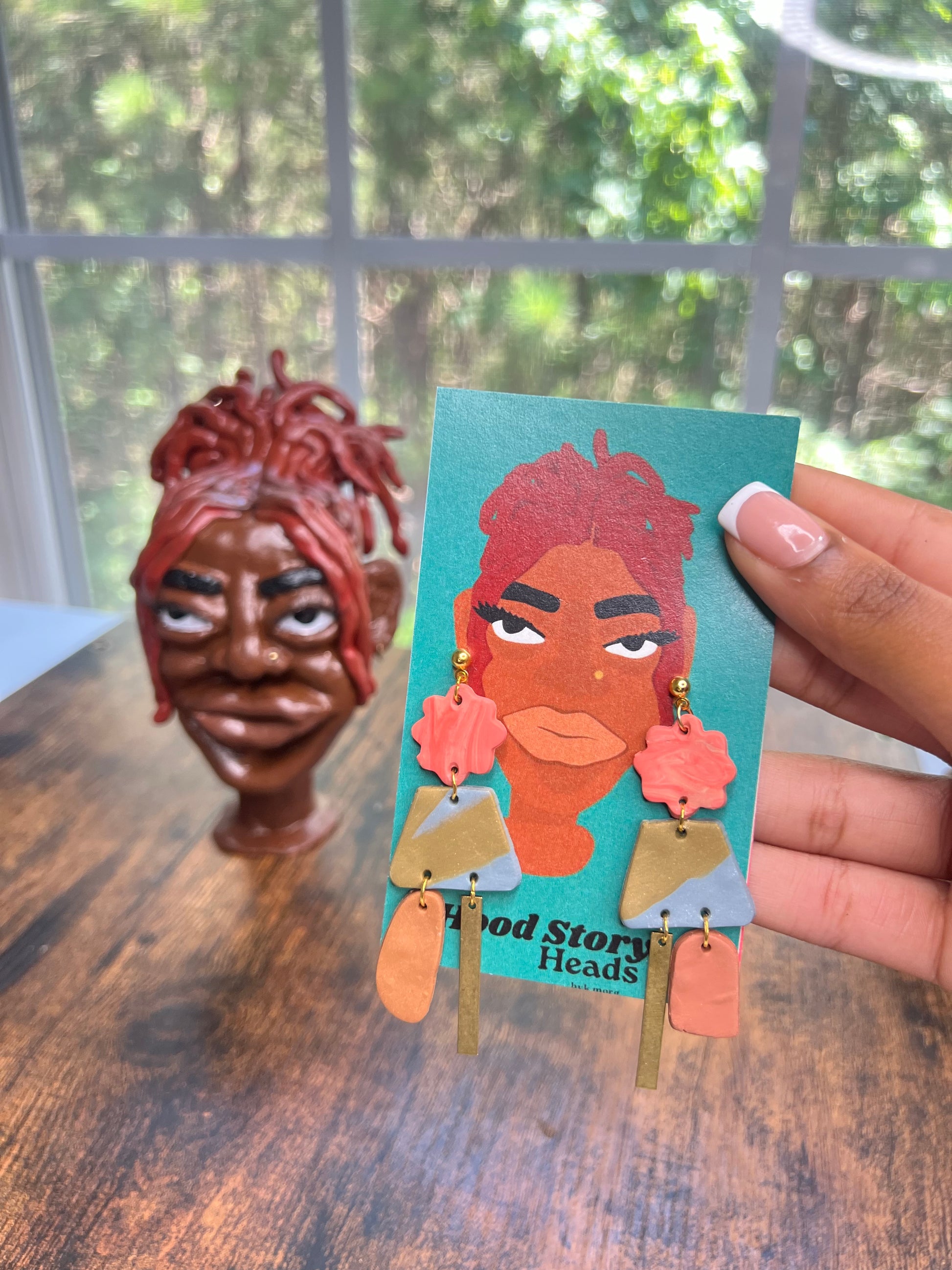 HSH Dangles are handmade clay earrings. Due to the delicate nature of the clay, handle with care to avoid breakage. Avoid contact with water and harsh chemicals. Colors may vary slightly due to the handmade nature of each piece.
