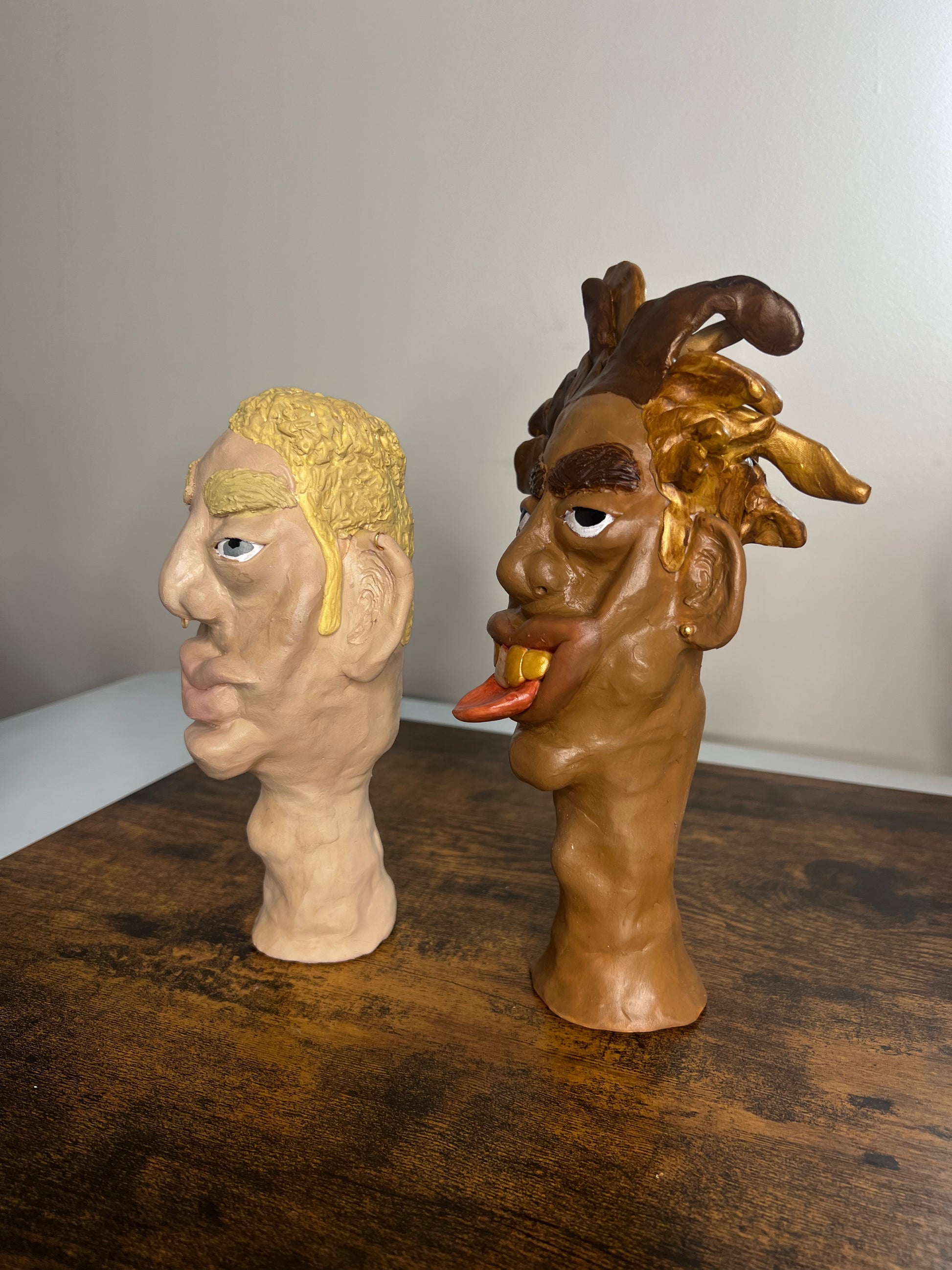 Hood Story Heads are handmade clay sculptures and may contain small parts. Not suitable for children. Handle with care to avoid breakage. Colors may vary slightly due to the handcrafted nature of each piece.