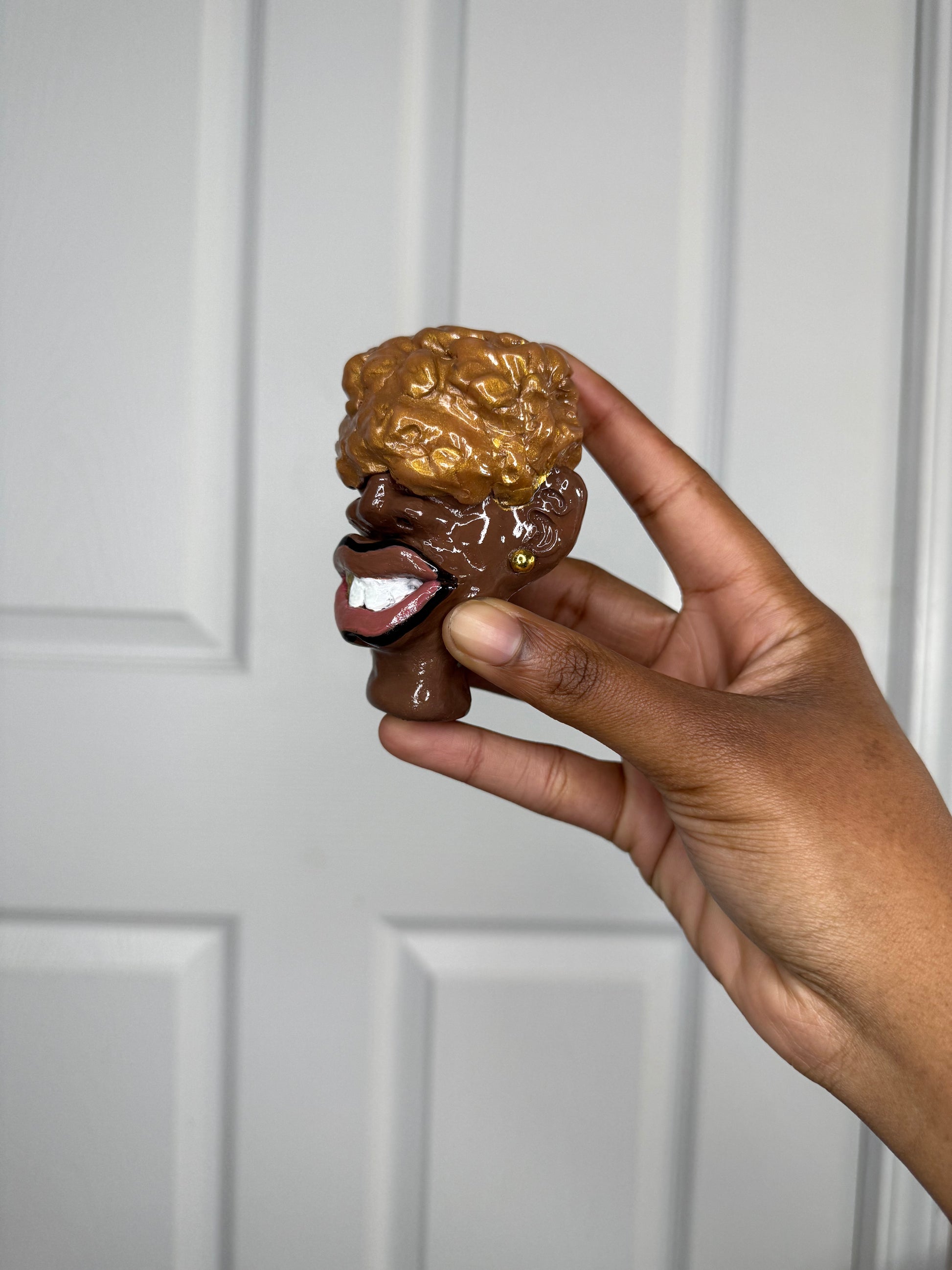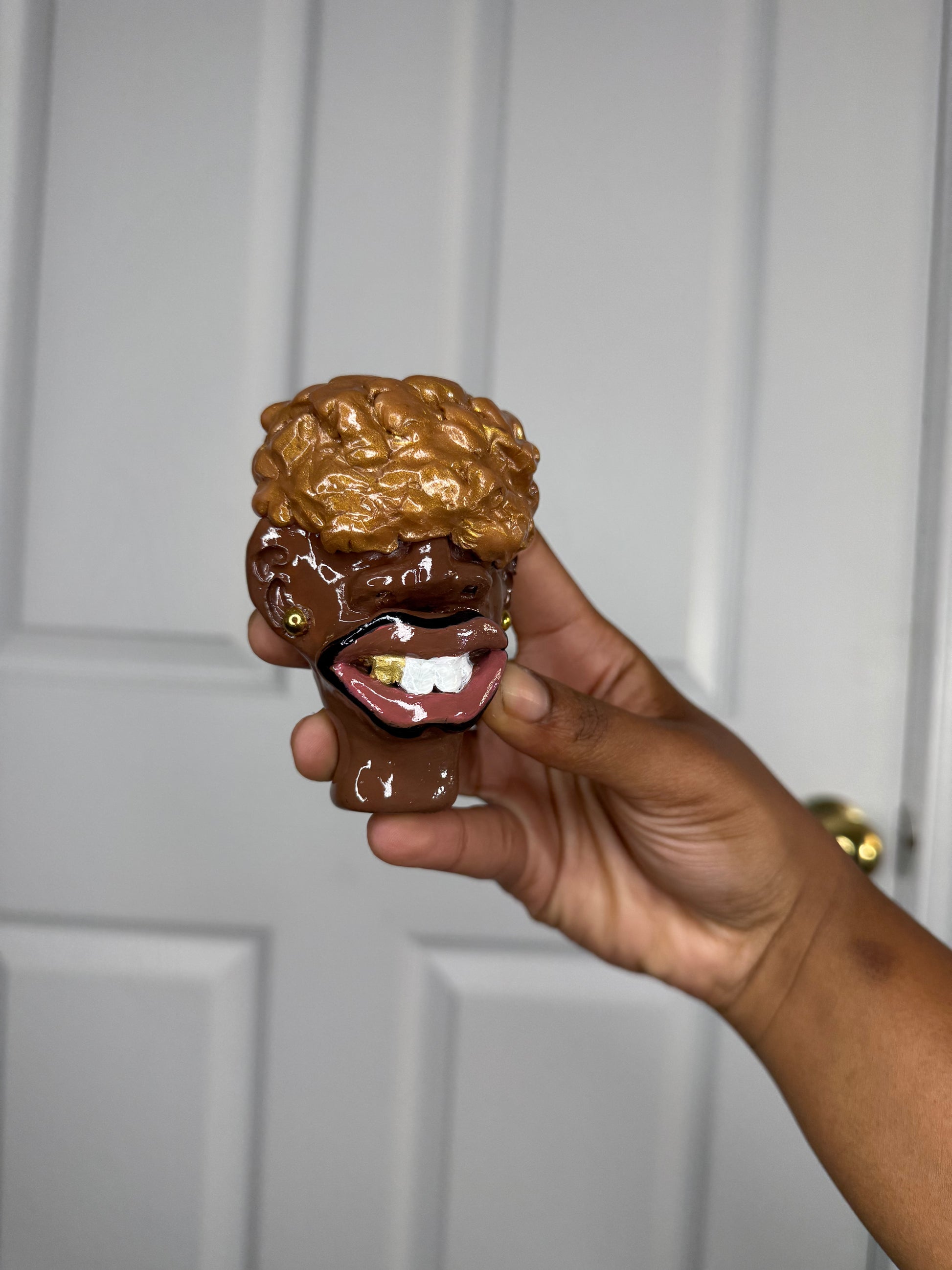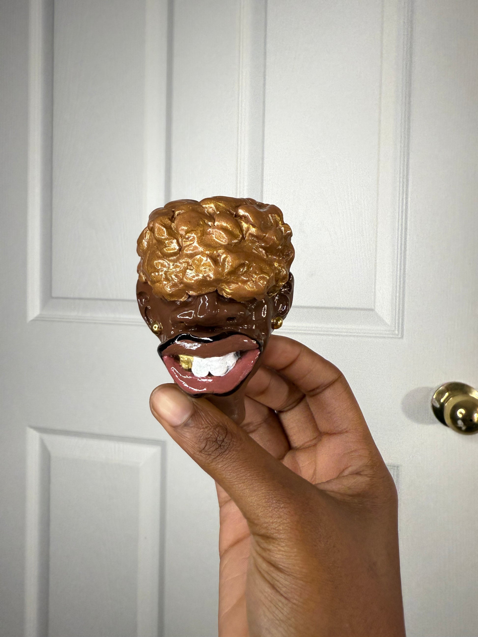 Hood Story Heads are handmade clay sculptures and may contain small parts. Not suitable for children. Handle with care to avoid breakage. Colors may vary slightly due to the handmade nature of each piece.