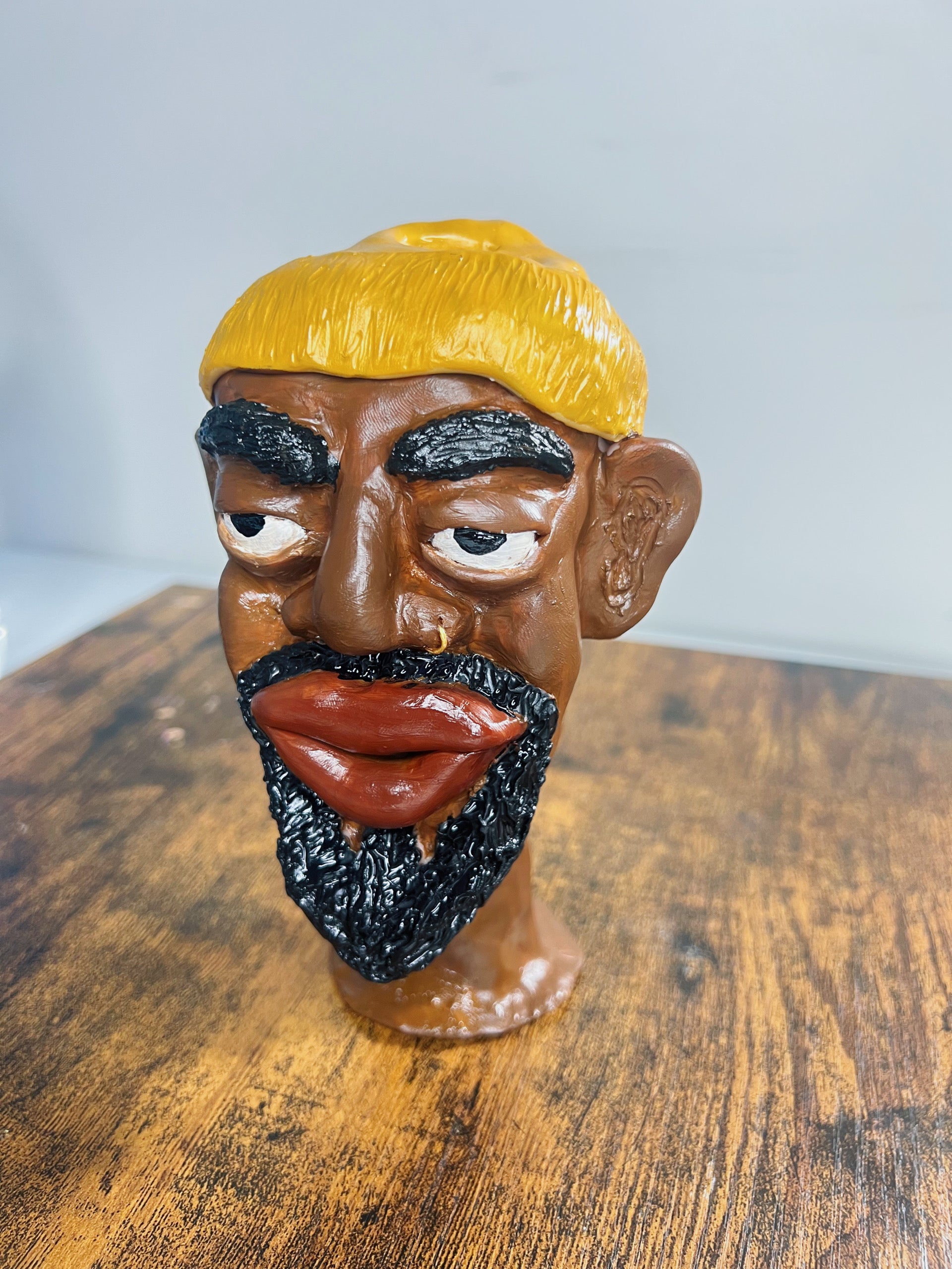 Hood Story Heads are handmade clay sculptures and may contain small parts. Not suitable for children. Handle with care to avoid breakage. Colors may vary slightly due to the handmade nature of each piece.