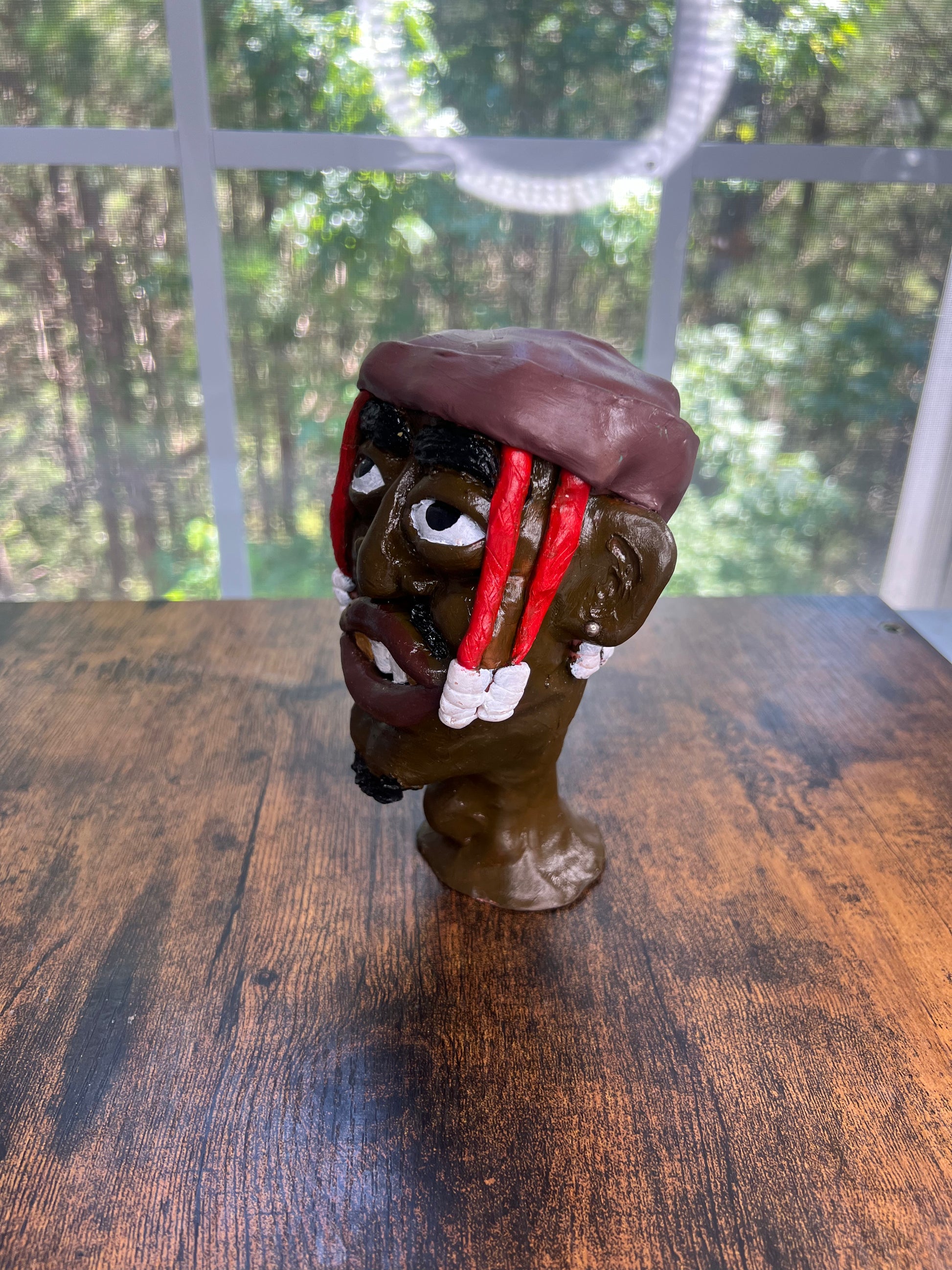 Hood Story Heads are handmade clay sculptures and may contain small parts. Not suitable for children. Handle with care to avoid breakage. Colors may vary slightly due to the handmade nature of each piece.