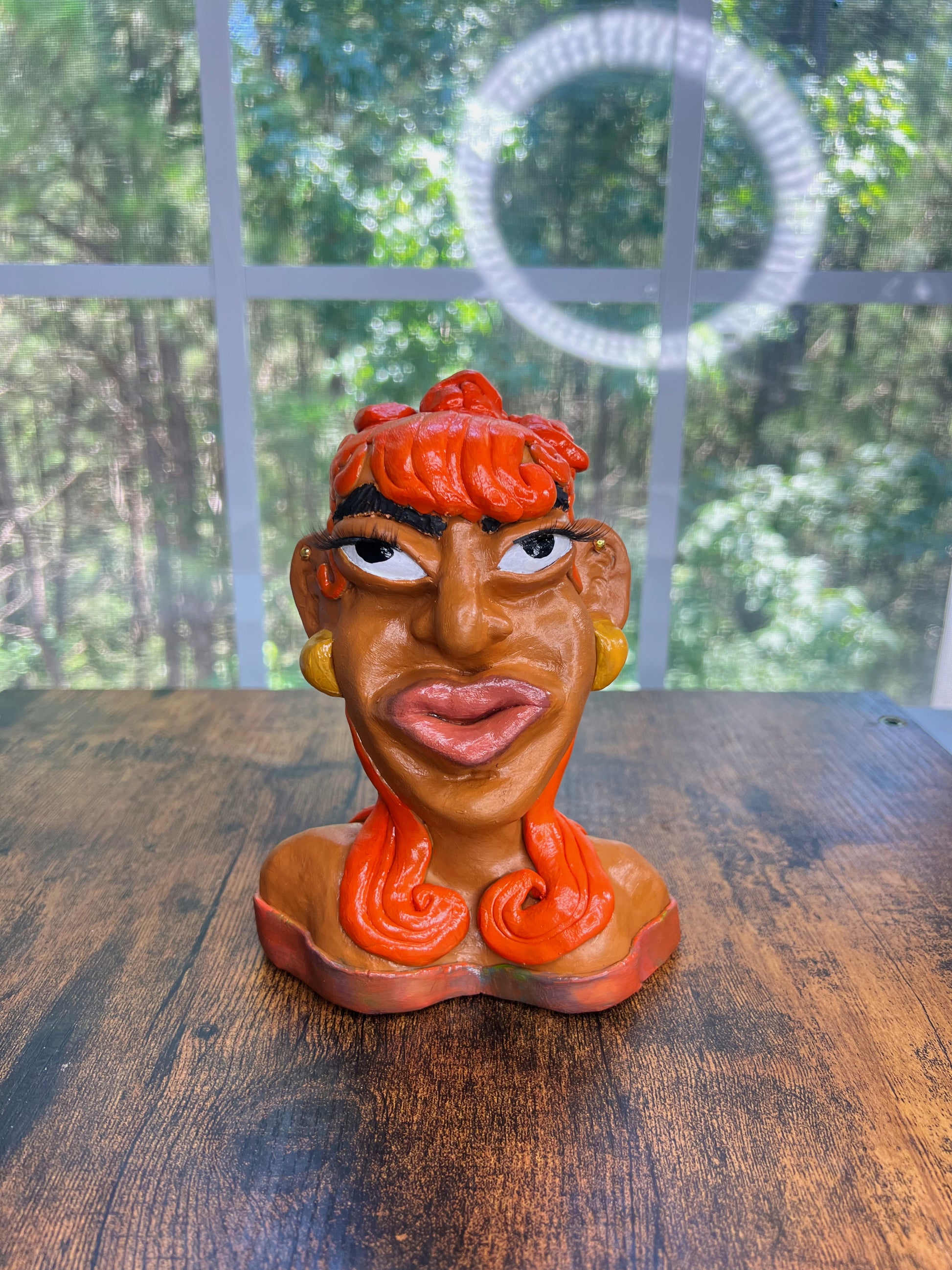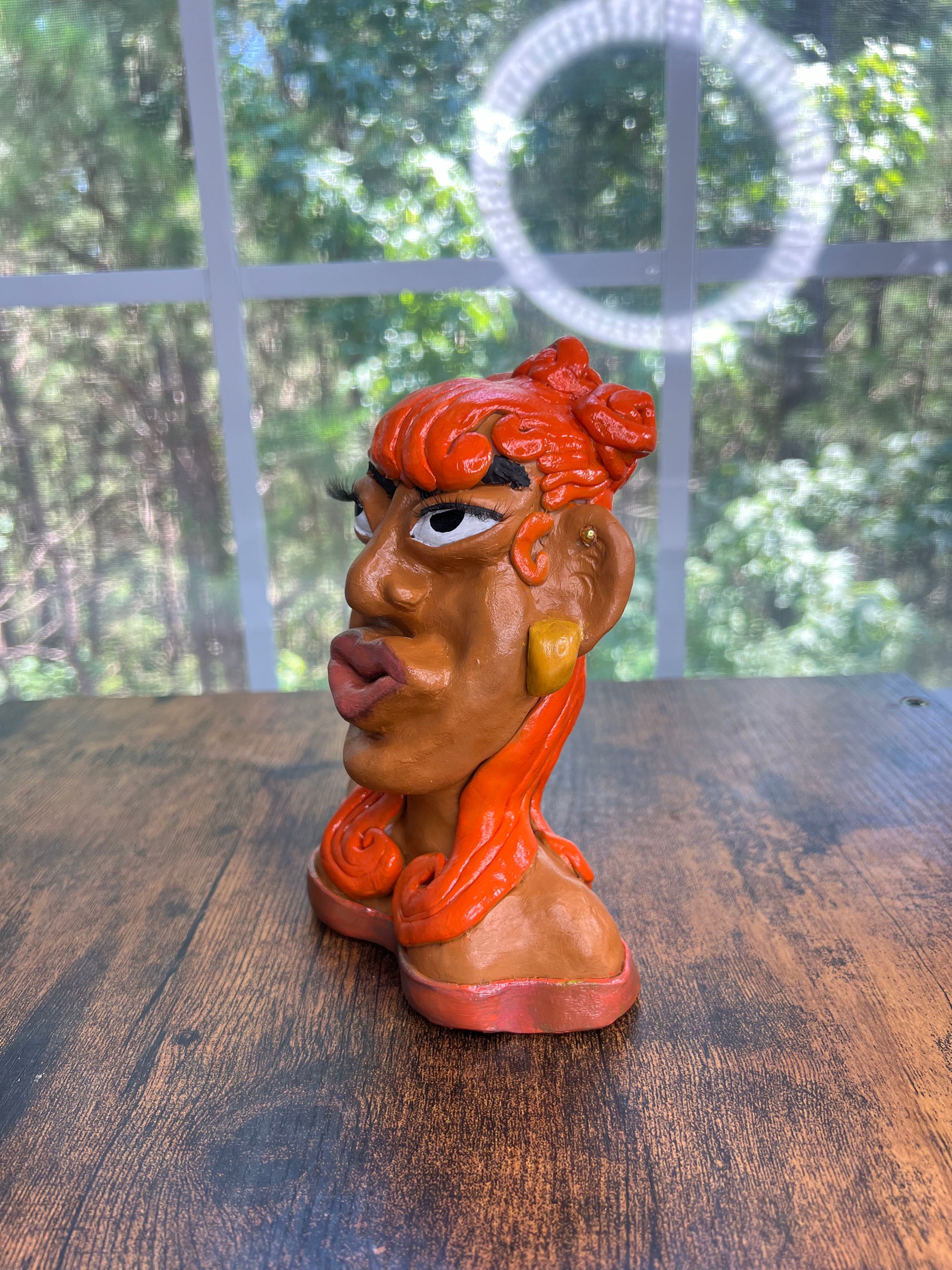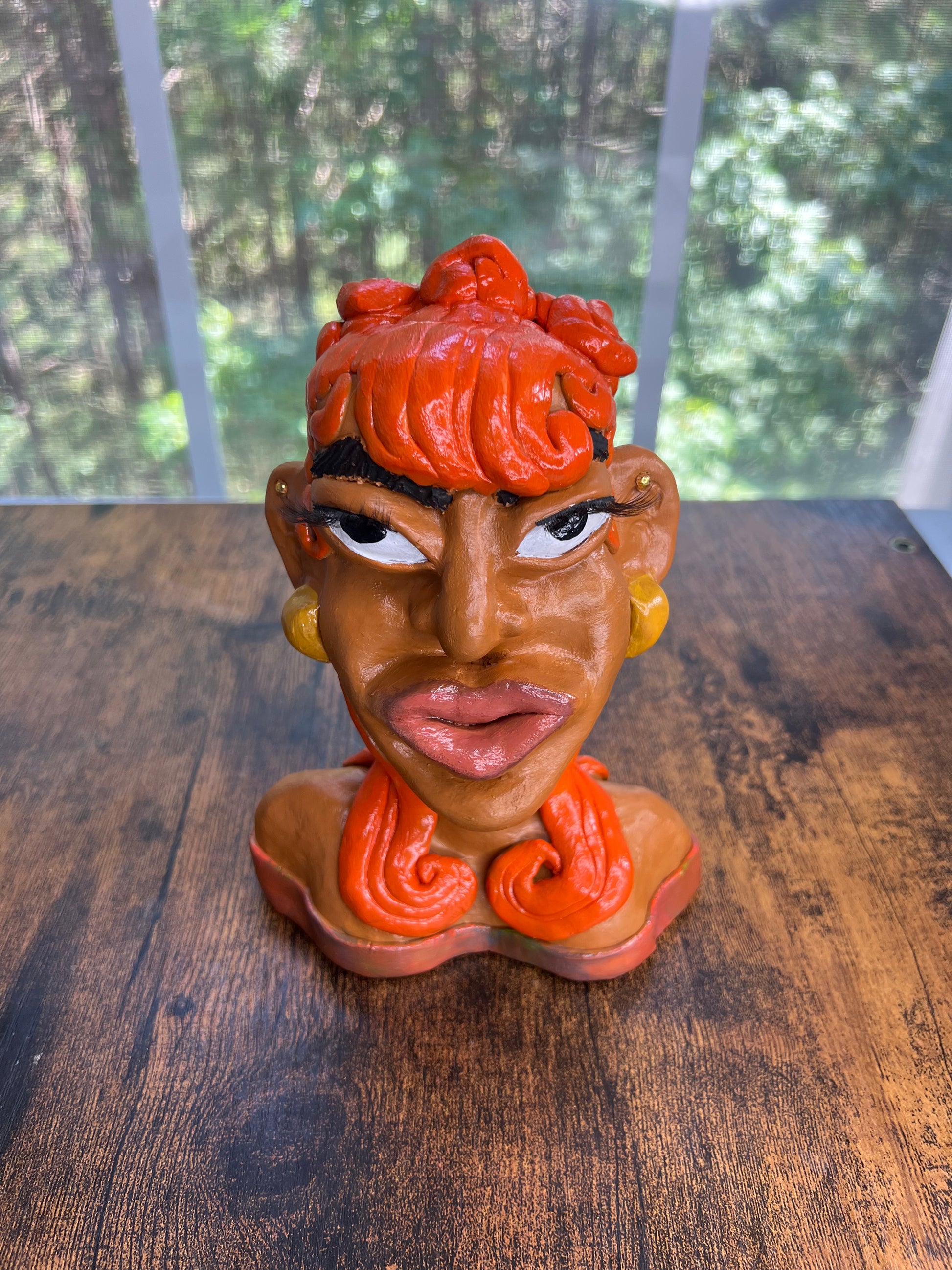 Hood Story Heads are handmade clay sculptures and may contain small parts. Not suitable for children. Handle with care to avoid breakage. Colors may vary slightly due to the handmade nature of each piece.