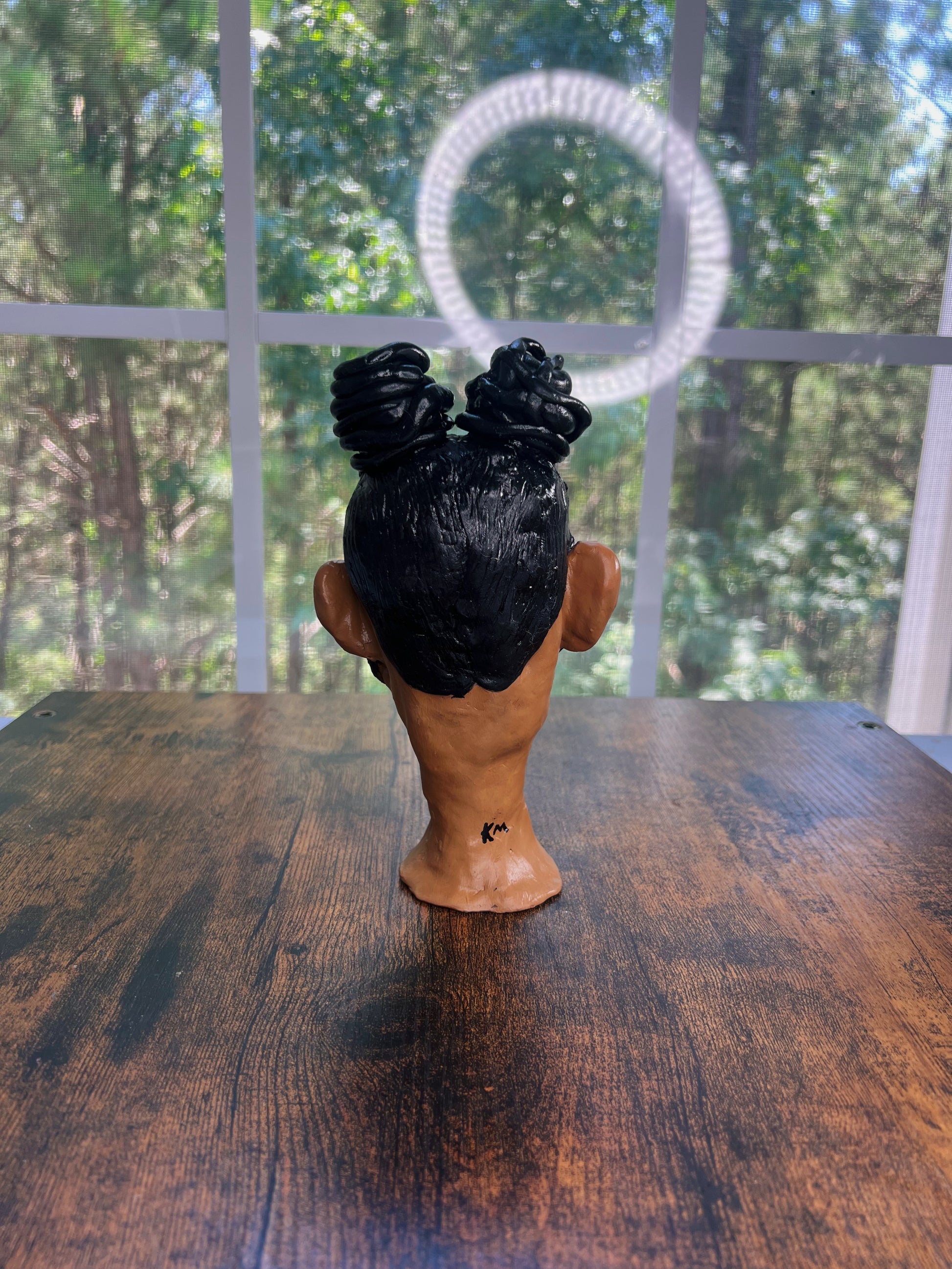 Hood Story Heads are handmade clay sculptures and may contain small parts. Not suitable for children. Handle with care to avoid breakage. Colors may vary slightly due to the handmade nature of each piece.