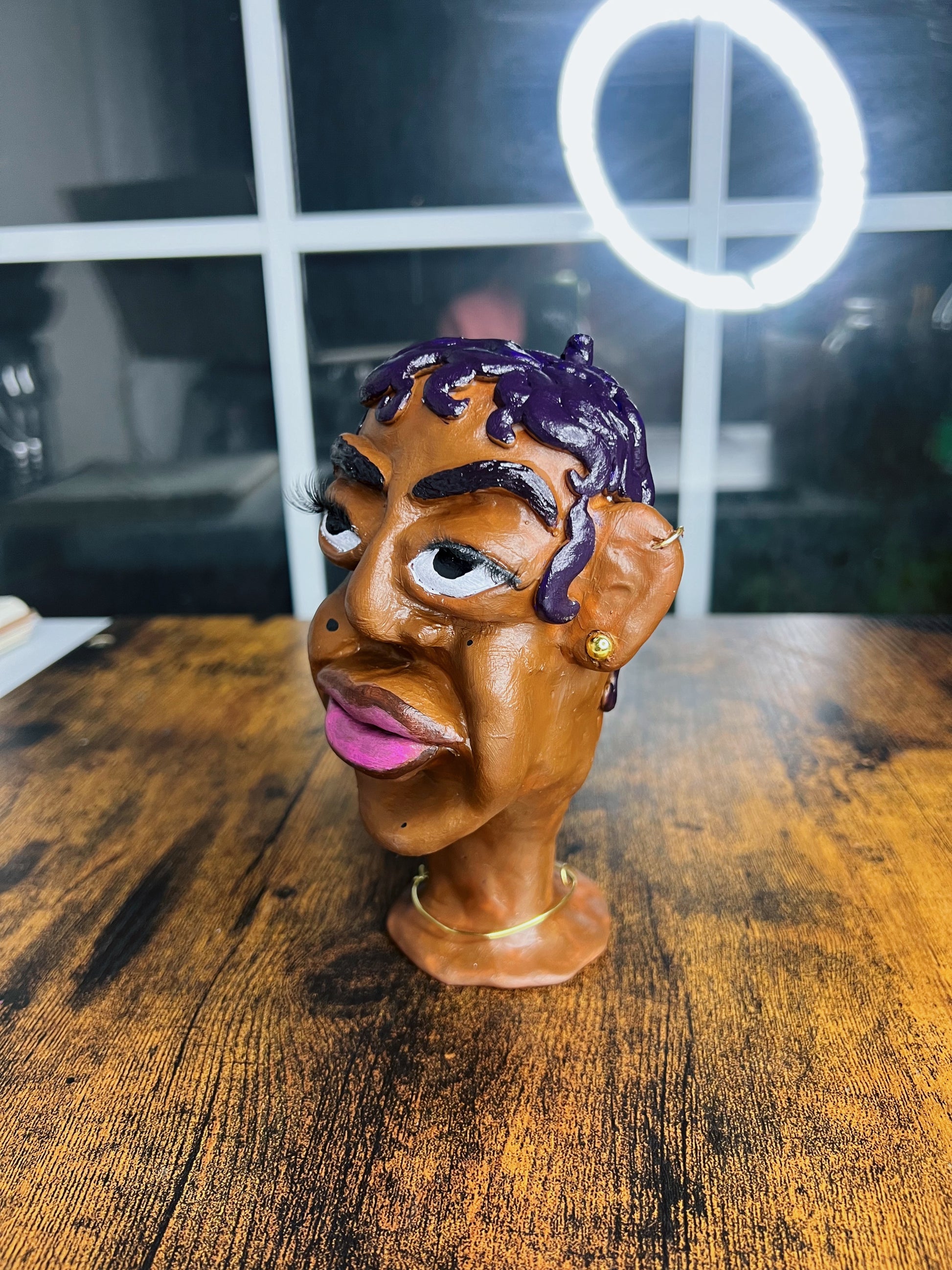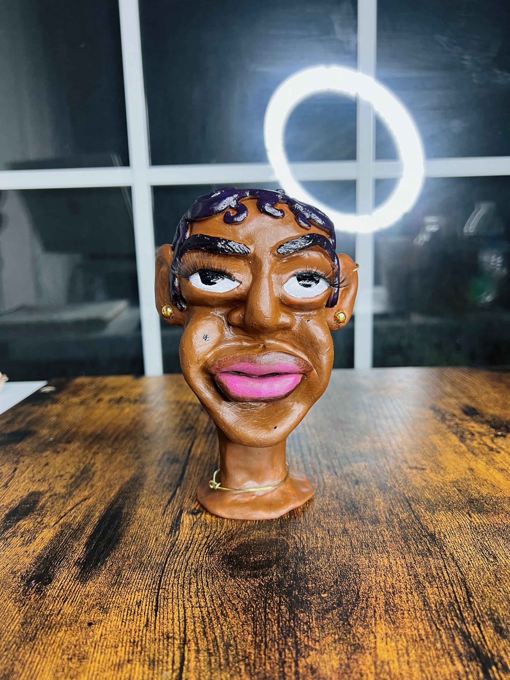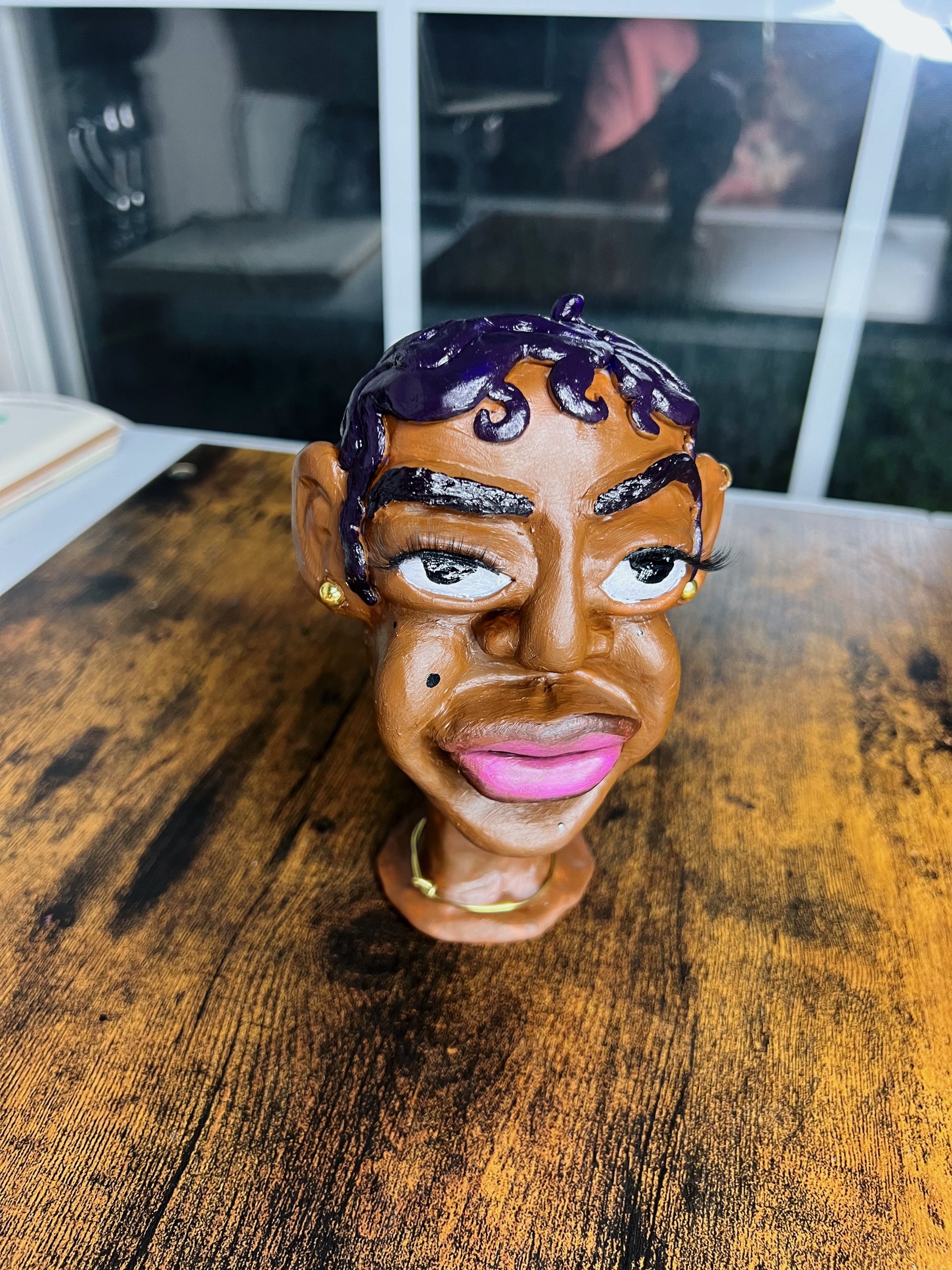 Hood Story Heads are handmade clay sculptures and may contain small parts. Not suitable for children. Handle with care to avoid breakage. Colors may vary slightly due to the handmade nature of each piece.