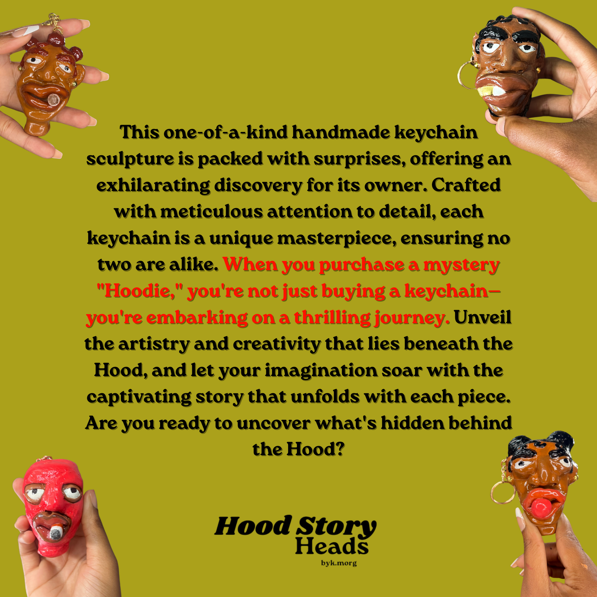 This one-of-a-kind handmade keychain sculpture is packed with surprises, offering an exhilarating discovery for its owner. Crafted with meticulous attention to detail, each keychain is a unique masterpiece, ensuring no two are alike. When you purchase "Hoodies," you're not just buying a keychain—you're embarking on a thrilling journey. Unveil the artistry and creativity that lies beneath the hood, and let your imagination soar with the captivating story that unfolds with each piece. Are you ready to uncover what's hidden behind the hood?