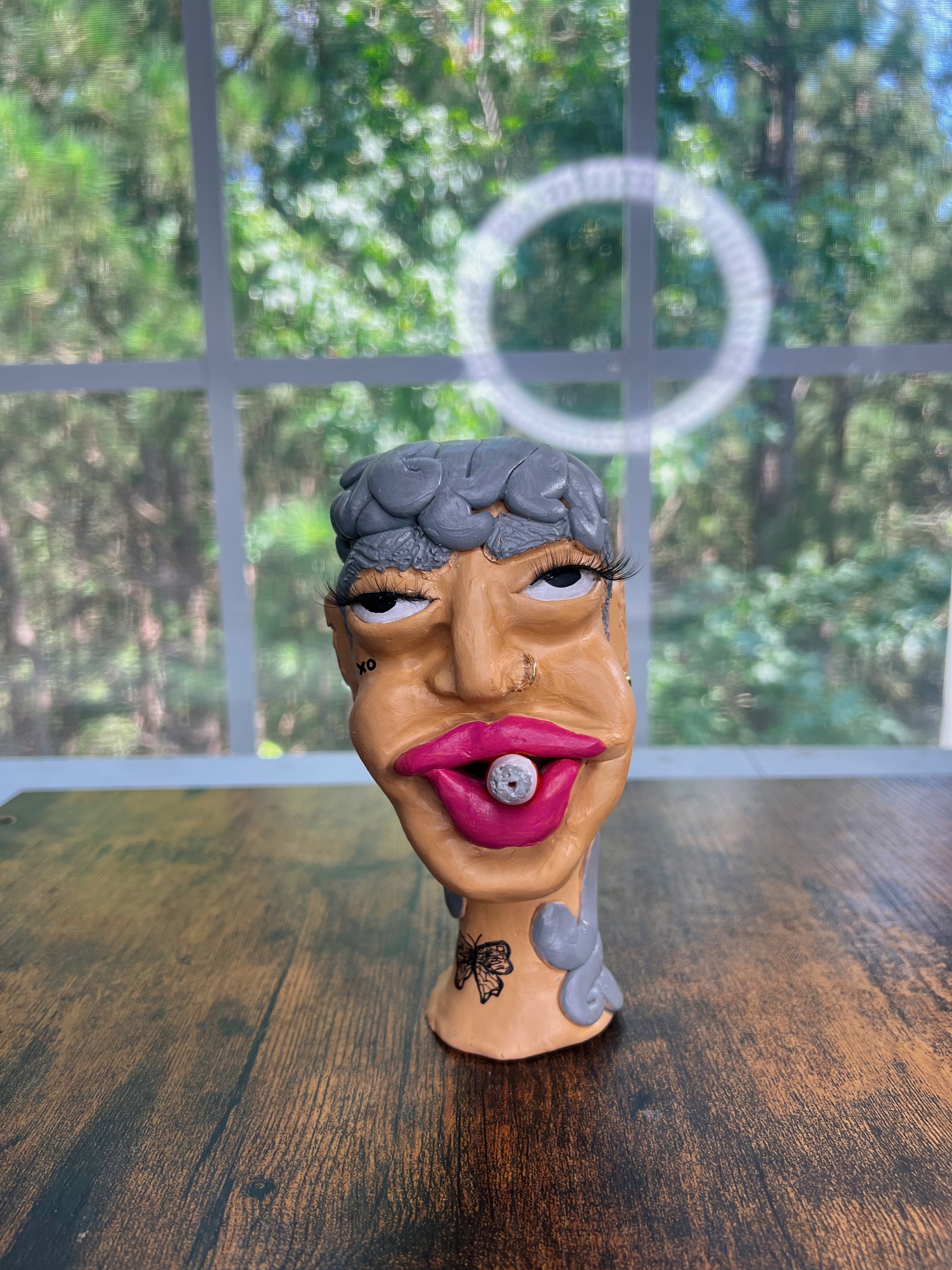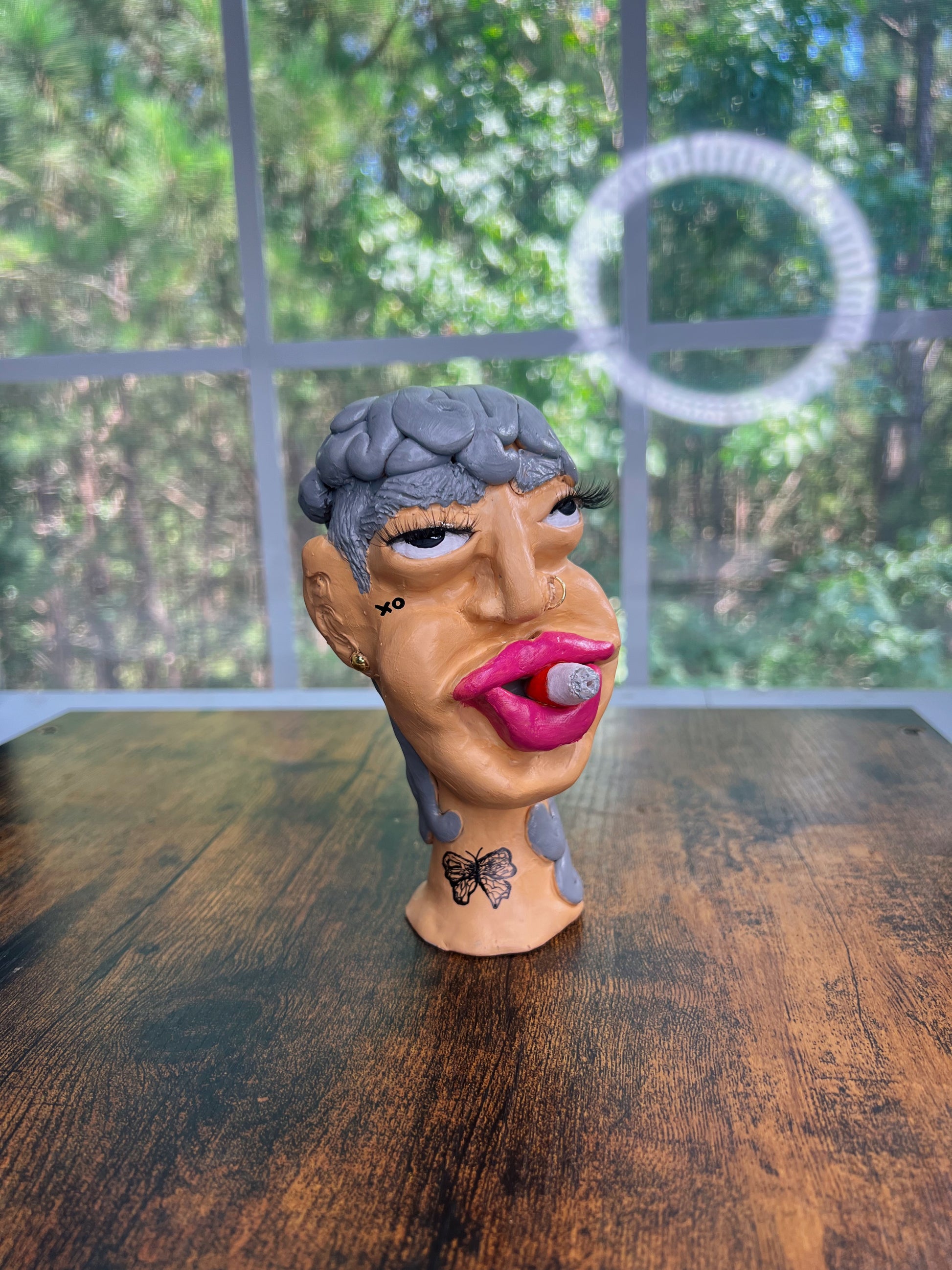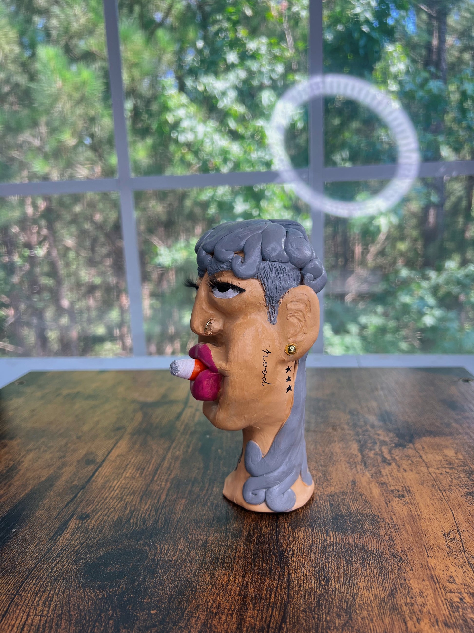 Hood Story Heads are handmade clay sculptures and may contain small parts. Not suitable for children. Handle with care to avoid breakage. Colors may vary slightly due to the handcrafted nature of each piece.