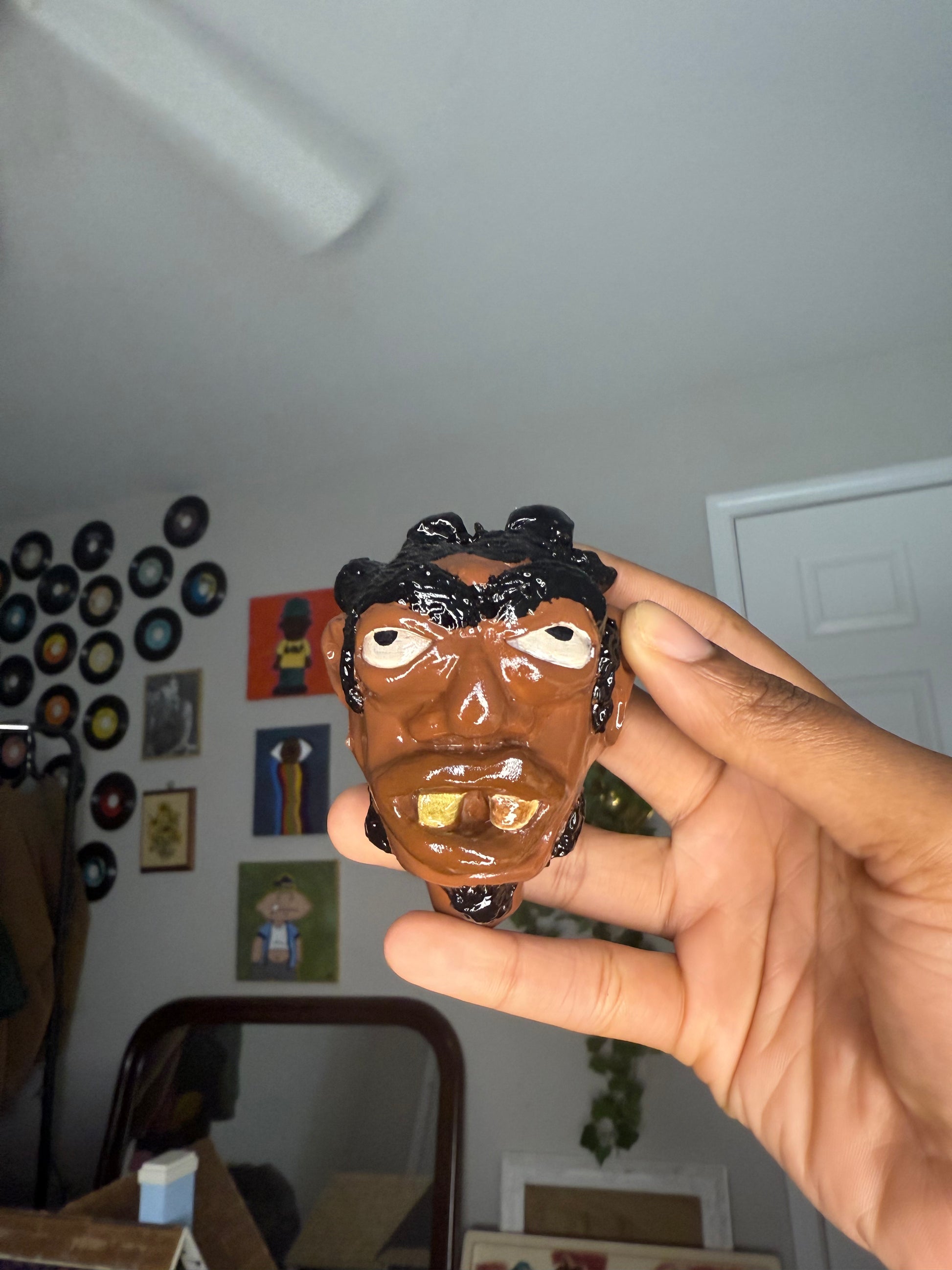 Hood Story Heads are handmade clay sculptures and may contain small parts. Not suitable for children. Handle with care to avoid breakage. Colors may vary slightly due to the handmade nature of each piece.
